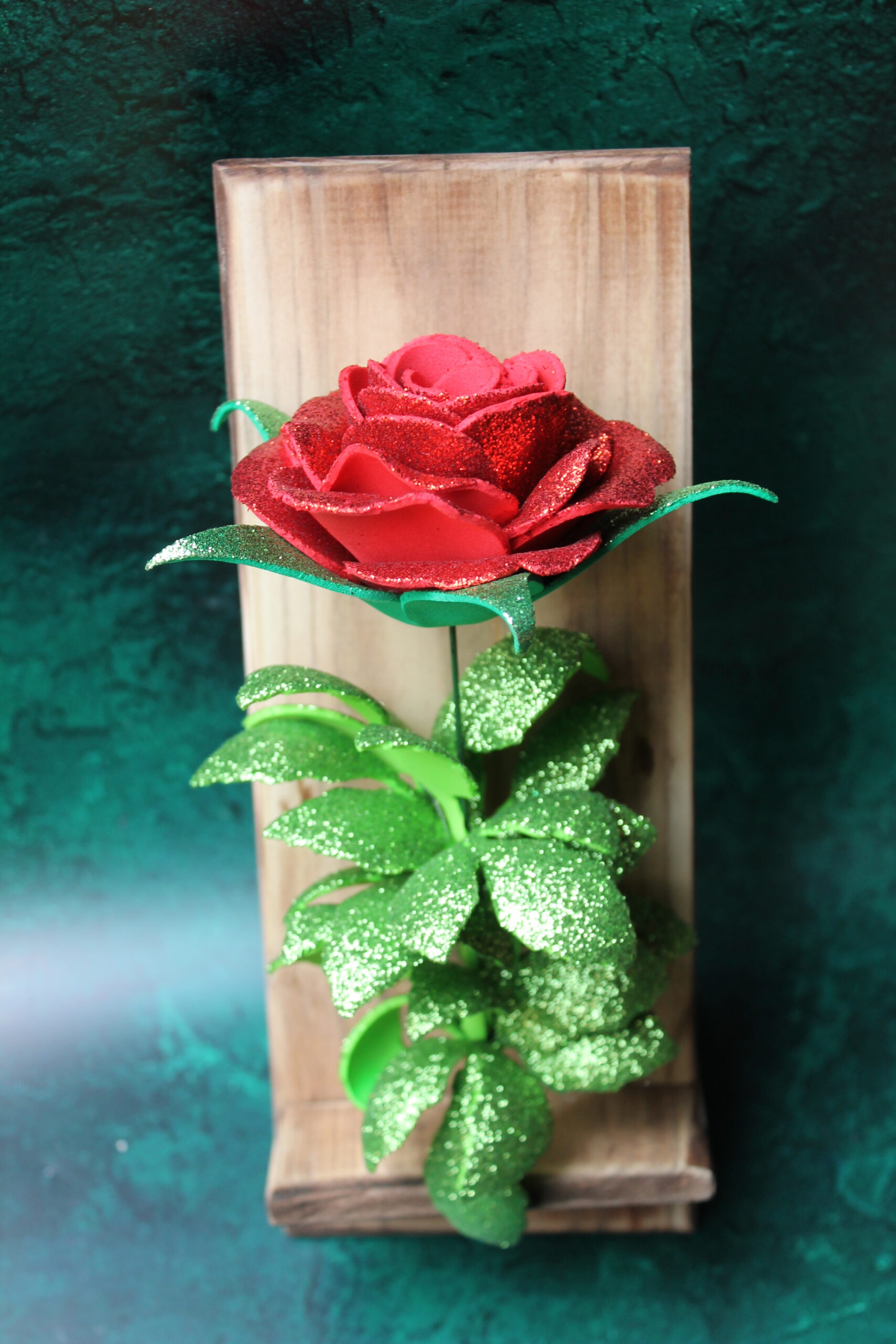 Rose éternelle sur support bois artisanal